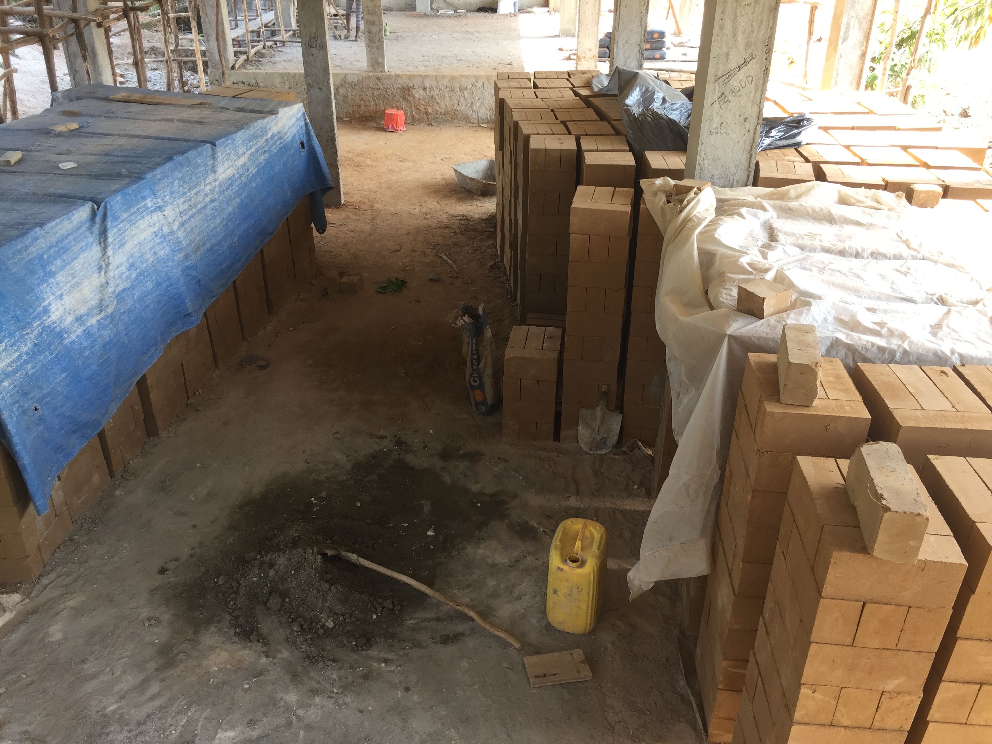 Au rez-de-chaussée, en revanche, tout est encore à faire. Les stocks de briques sont déjà prêts. Nous projetons de munir le Centre d’une bonne machine à briques pour pouvoir éviter de faire appel à une entreprise et créer un emploi sur le Centre. Pour ceux qui s’en souviennent, une telle machine avait déjà été envoyée, mais elle s’est rapidement trouvée hors service car de mauvaise qualité.