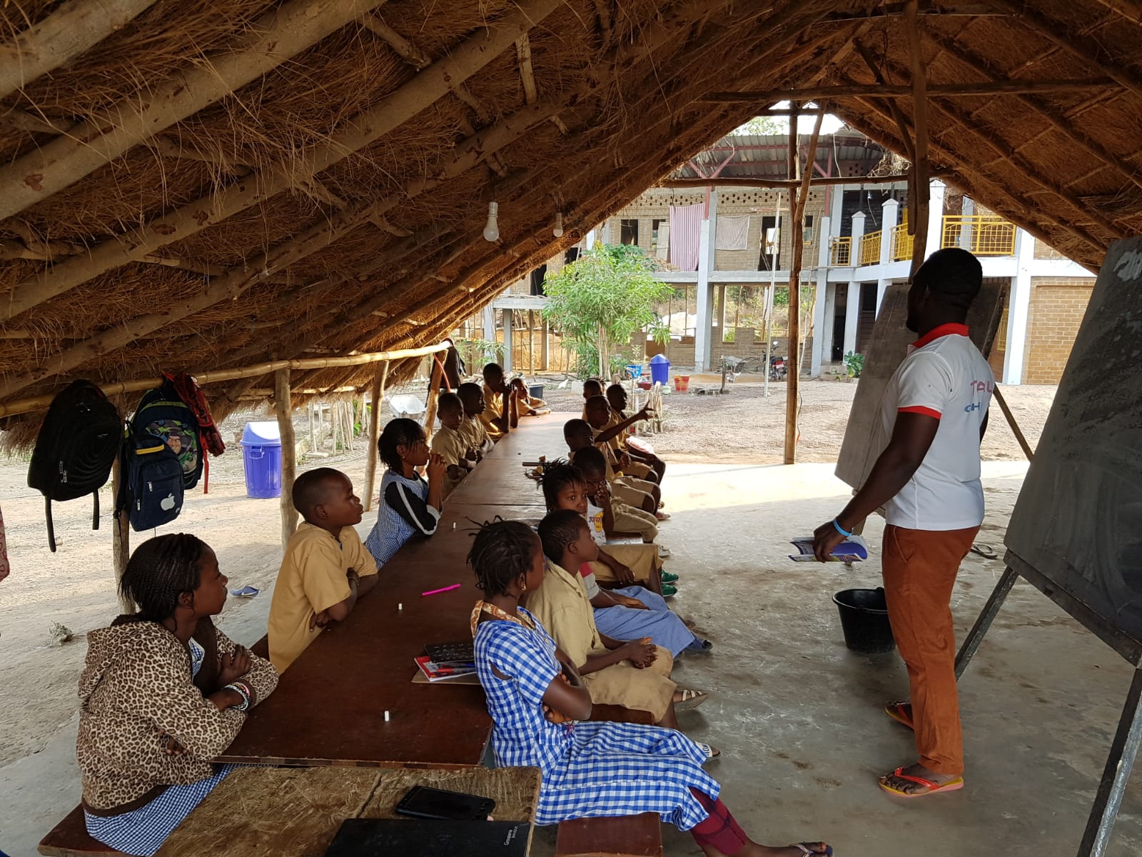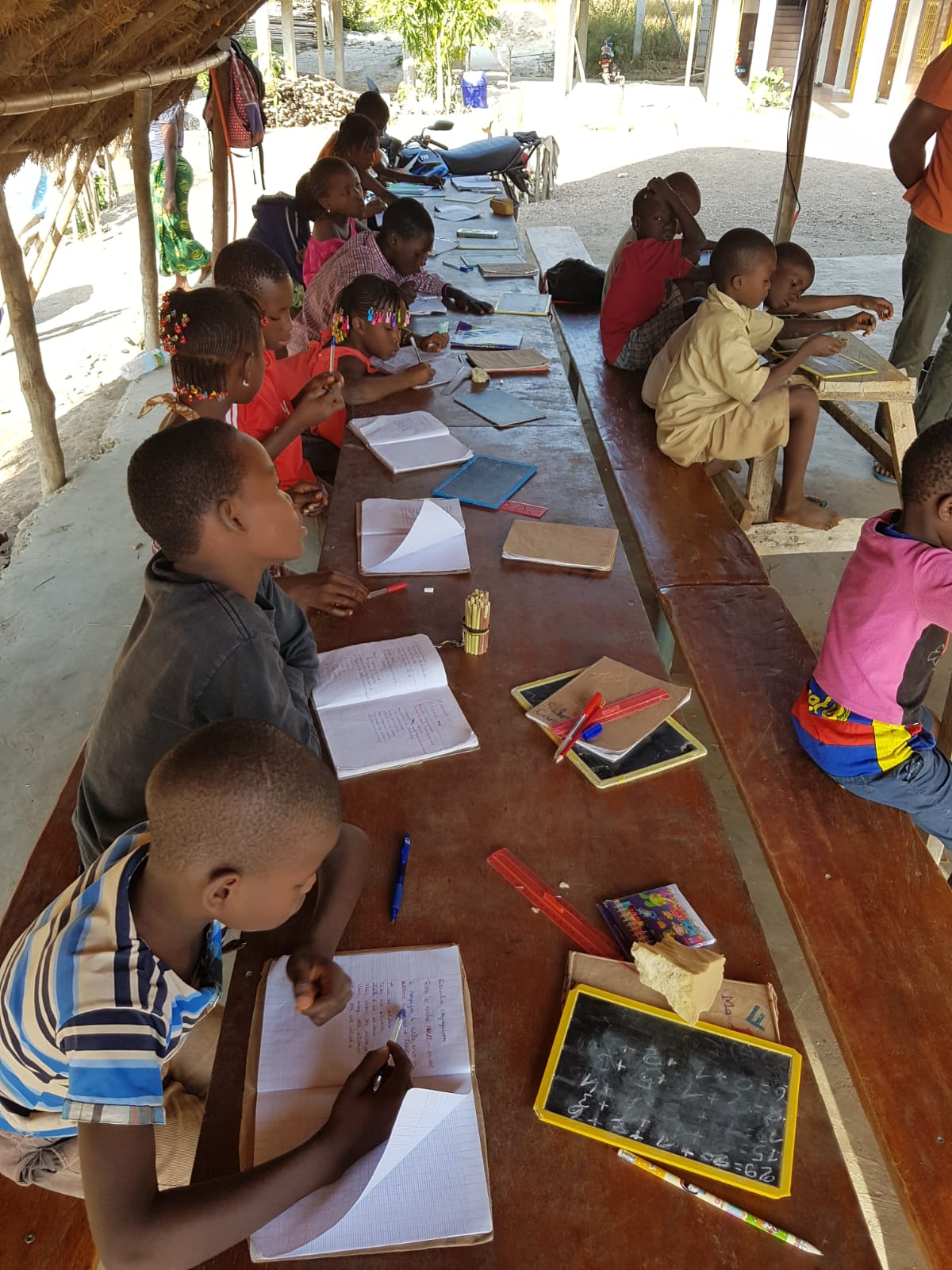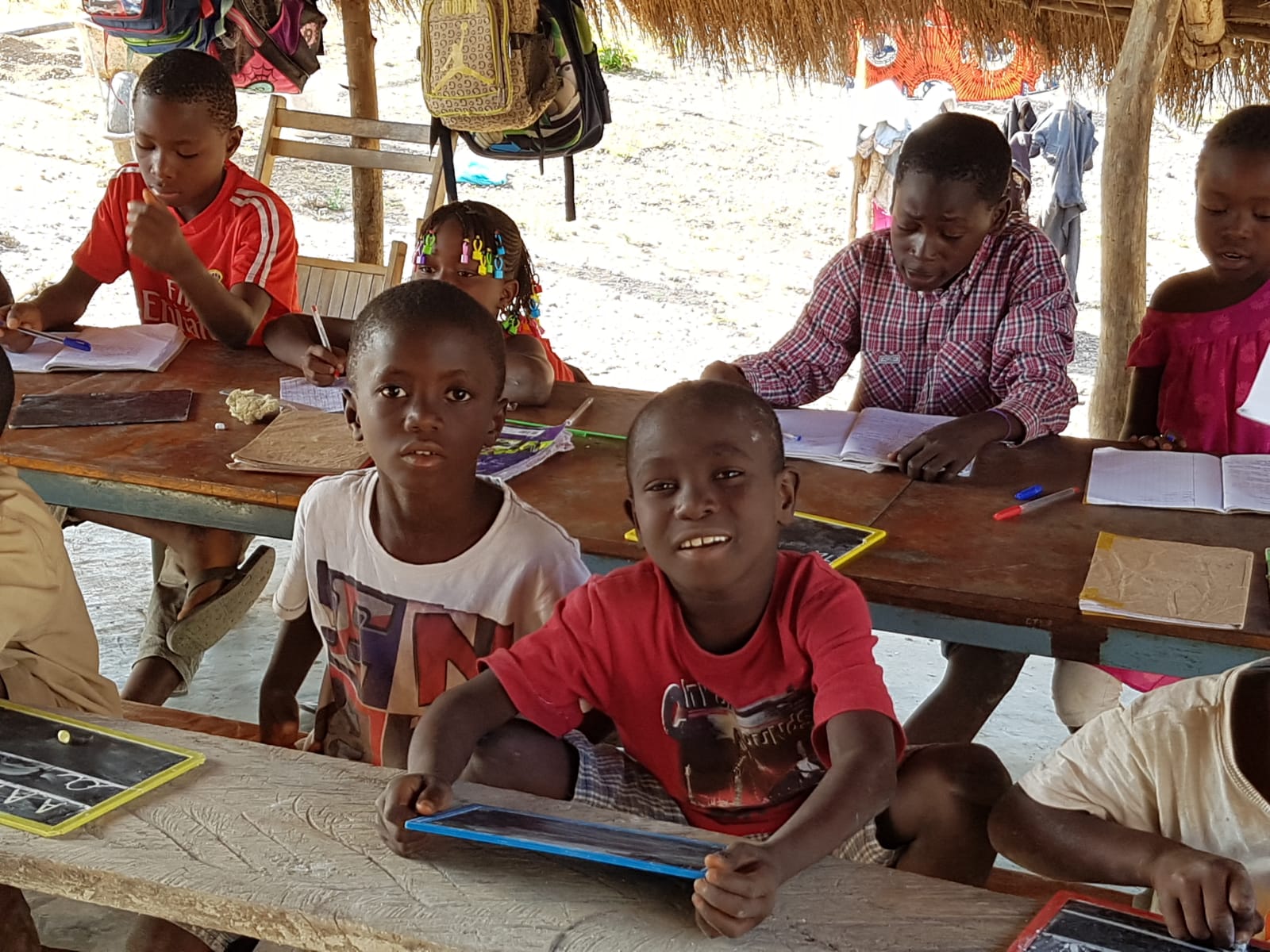 L’accueil d’enfants dans le centre en Guinée Conakry a tout de suite soulevé la question de leur scolarisation. Etant situé assez loin de la ville, le plus simple a été de créer une école sur place. Celle-ci accueille non seulement les enfants du centre, mais aussi certains enfants des environs.