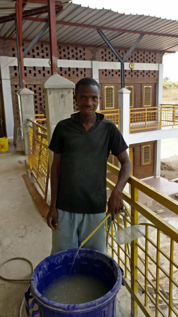 Gédéon présent depuis le début, très apprécié des enfants.Jérémie, l’enseignant du primaire première et deuxième année (juste après la maternelle)Joseph a des compétences en agronomie et s’occupe des cultures mais aussi de certains dépannages et entretiens au centre. Elie prend en charge une classe de 8 à 10 ans. Esaïe, coursier mais aussi l’homme à tout faire du centre avec Bintou, sa fiancée. Il est en charge de tous les trajets en moto pour amener les collégiens et lycéens et les cuisinières pour les courses quotidiennes. Paul est ingénieur, il dirige les travaux de construction. Il vient très régulièrement au centre. Il compte s’installer dans le secteur prochainement. Elisa ( une maman d’un enfant accueilli) vient régulièrement étoffer l’équipe de la cuisine déjà composée de Léontine, Mamadama et Nierafoly.( Notre) Elisa sur place depuis 10 jours vient s’ajouter ! Et pour terminer, voici Daniel, le responsable du centre, celui qui veille sur cette belle troupe…