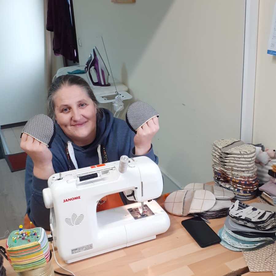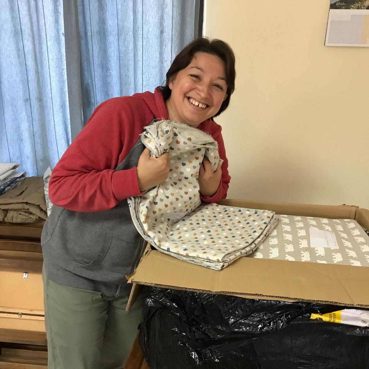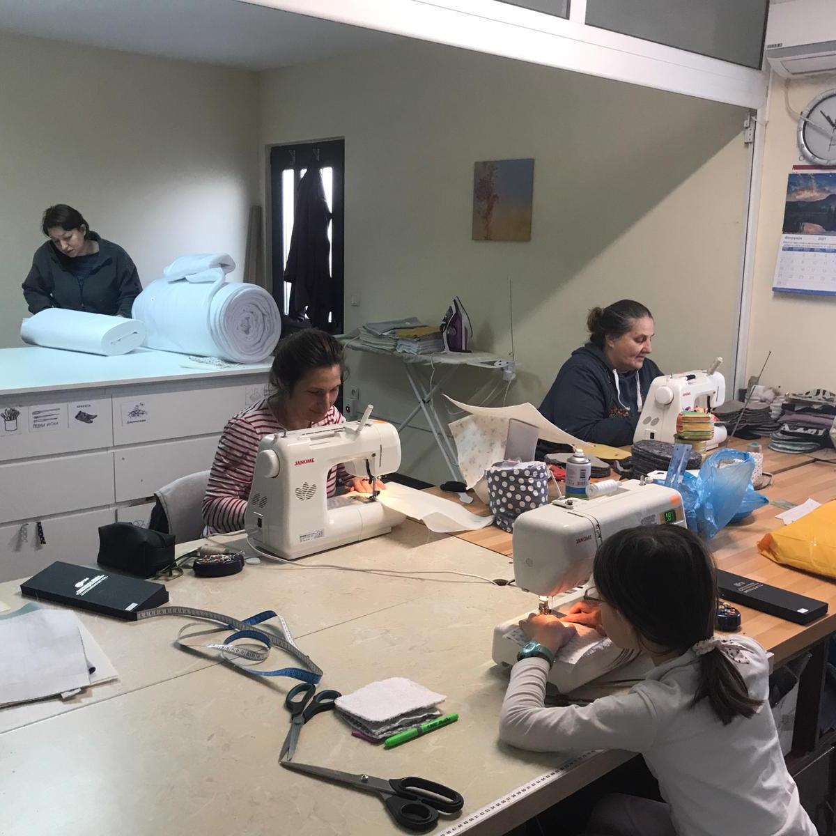 Nous avons repris le travail début janvier- après la pause des vacances de Noël- à un bon rythme puisque nous envoyons un gros carton de stock tous les 15 jours. Les couturières ont parfois des produits attitrés. Ainsi, en ce moment, Gallia fabrique les maniques repose-four , Evgenia s’occupe des kits naissance, et Joana des trousses en tout genre. Pour ma part je ne m’occupe guère que de l’approvisionnement en fournitures, de la traduction des commandes ou de l’envoi des stocks. Joana, notre chef d’atelier, supervise ou réalise de façon parfaite tout le reste : tester les nouveaux patrons, voire en fabriquer, former les autres couturières sur les nouveaux produits et suivre la production au quotidien, être attentive aux besoins ou problèmes qu’elles rencontrent, nous aviser si besoin.