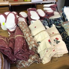4 couturières travaillent à l’atelier et 2 d’entre elles travaillent à la maison. Les contrats sont adaptés à la vie de chacune; ce qui permet d’offrir un revenu, voire d’apprendre un métier à des personnes en situation parfois précaire. Les âges sont très divers aussi, puisque la plus jeune est une étudiante et la plus âgée une senior. Celle-ci travaille pour l’atelier depuis sa création!