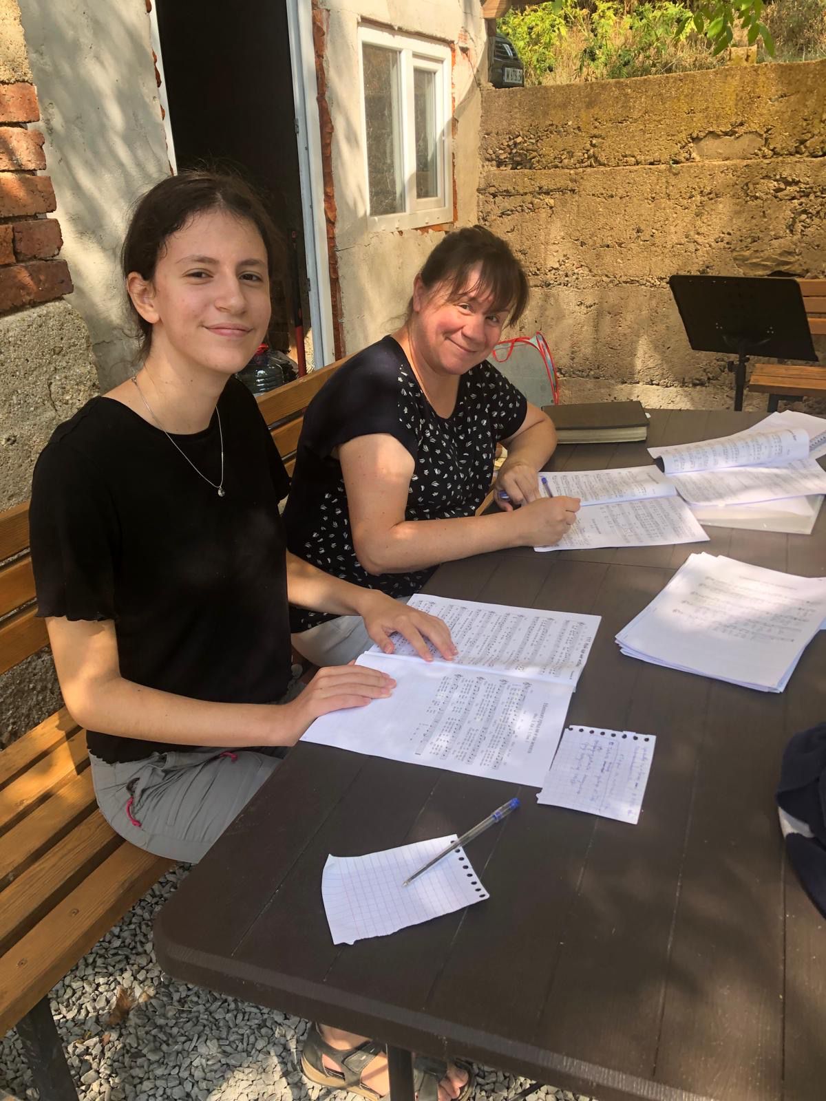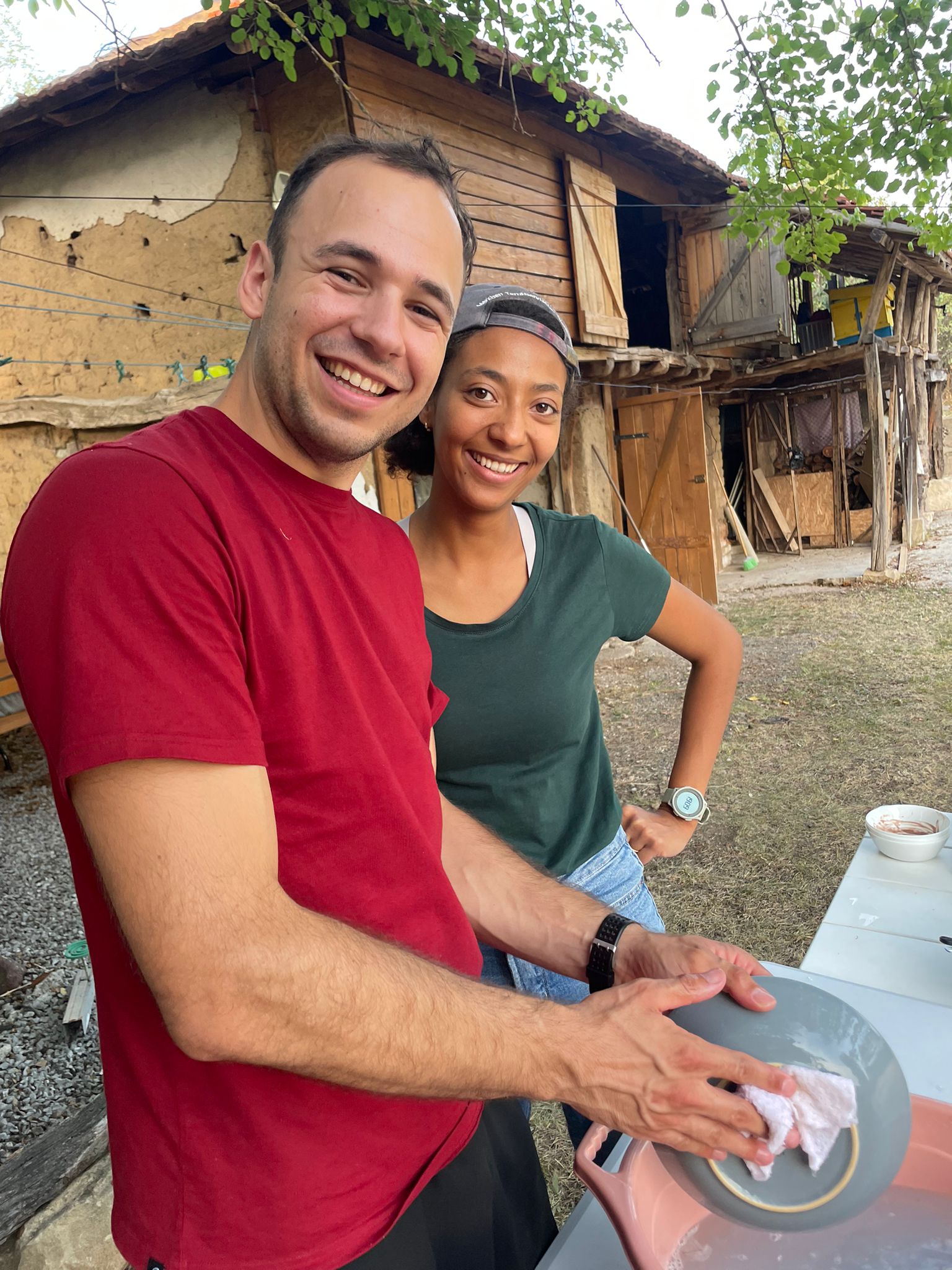 Miro, un jeune que nous accueillons, est venu nous aider deux jours. Romain Lefeuvre était aussi présent. Enfin à l’intendance, Marie-Neige était soutenue par Emilie et Paméla. La construction s’est terminée le samedi 21 juin. À peine la construction achevée. Des jeunes de Montana et de Doctor Iosifovo ont dressé les tables sous le préau pour que nous mangions ensemble.