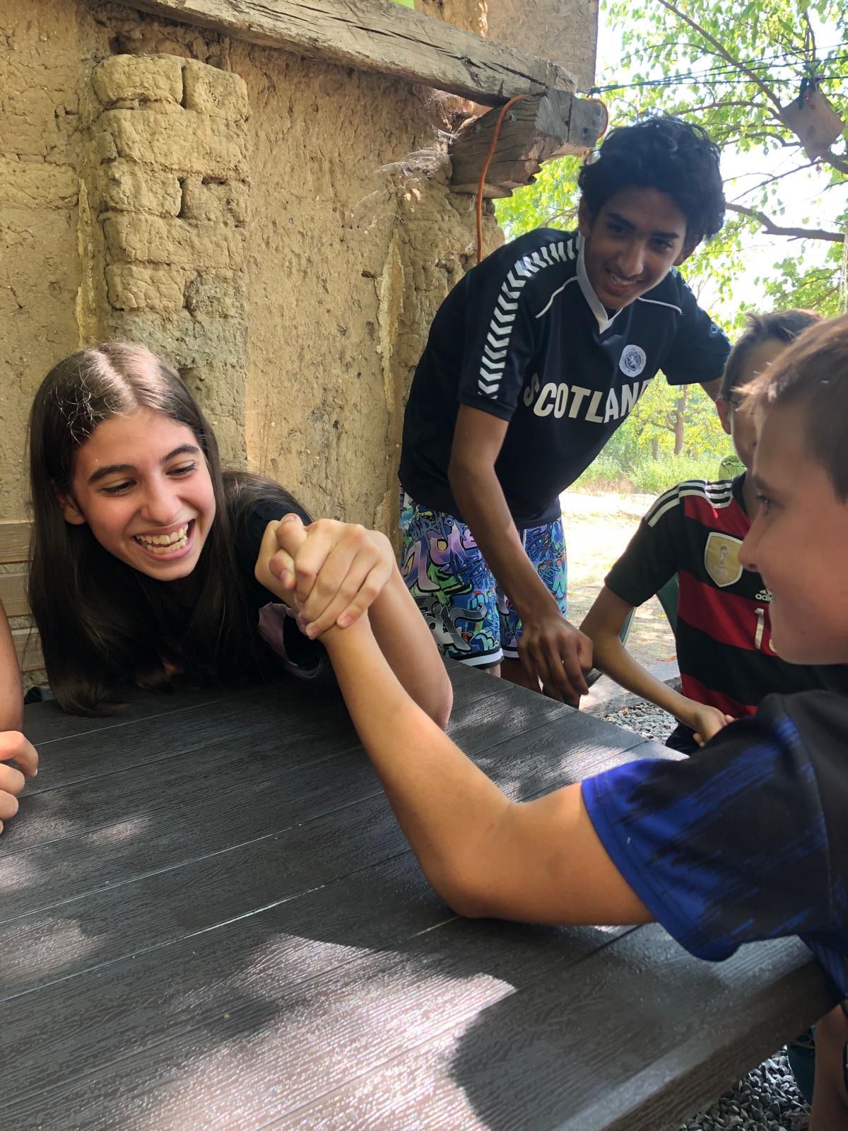 Notre plus jeune participant a 9 ans et la plus âgée des campeuses 19. Chacun s’est trouvé des amis, et nous ne constatons pas de « laissé pour compte ». Les jeunes des villes et les jeunes des villages font connaissance et s’entendent bien malgré des vies bien différentes. Les jeunes des villes sont de familles bulgares relativement aisées, tandis que ceux de la campagne sont de la minorité ethnique Rom et vivent souvent dans une grande précarité.